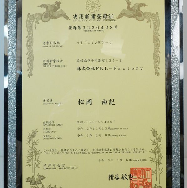 リトフェインの実用新案登録証が届きました。サラリーマン時代に業務命令で渋々何件か特許を書か…